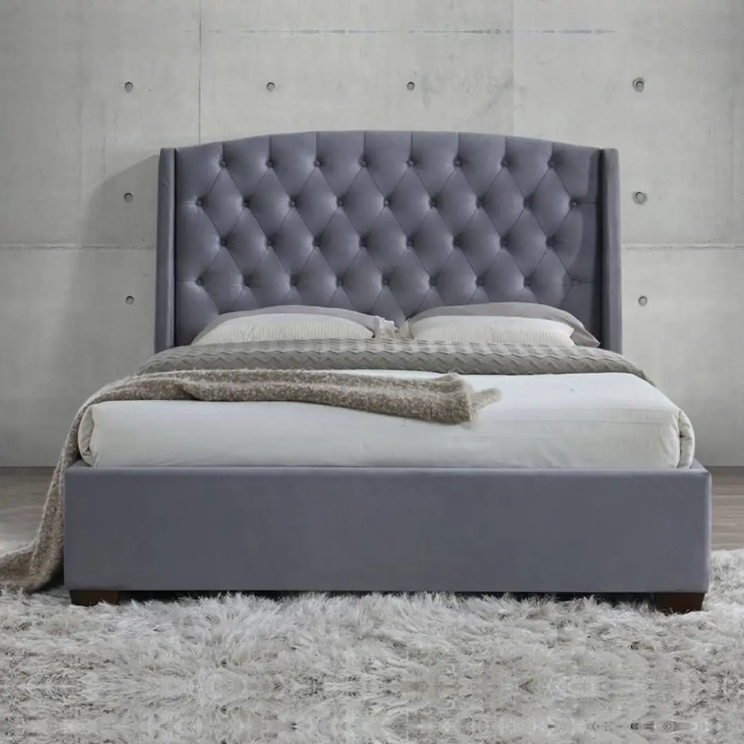 The Balmoral bed is upholstered in luxurious grey velvet upholstery and features a wing back cushioned headboard with tufted fabric studs detailing. Featuring a sprung slatted base to give natural bounce to the sleeper, this bed adjusts to where pressure is most exerted for greater comfort. You can add a touch of elegance to any style of bedroom with the Balmoral Bed.It’s ideal for those who want to add colour to their bedrooms without worrying about the matching furniture. The Plush Velvet Fabric upholstery will contrast beautifully with the sturdy wooden feet to make your bedroom look sophisticated.