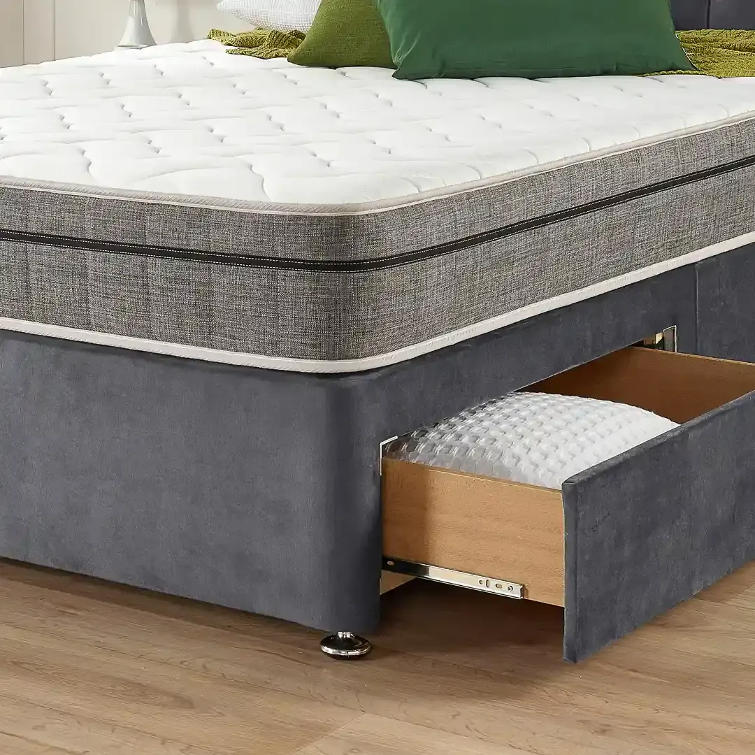 The frame of the cheap Divan beds with mattress is of solid wood. Hardwood plays an important role in providing the foundation you require. The box spring bases present in the frame keep the entire bed frame intact. Without sacrificing the overall quality of the mattress the box spring keeps the comfort factor at maximum.